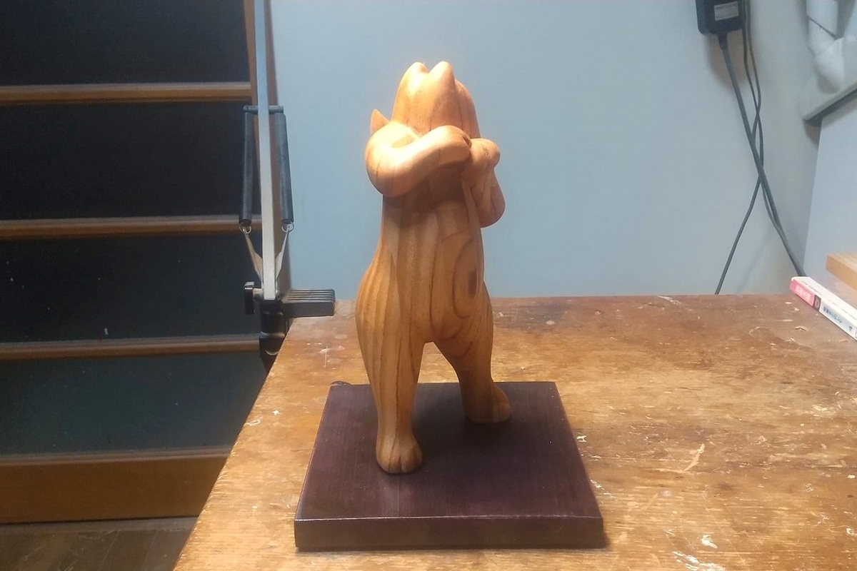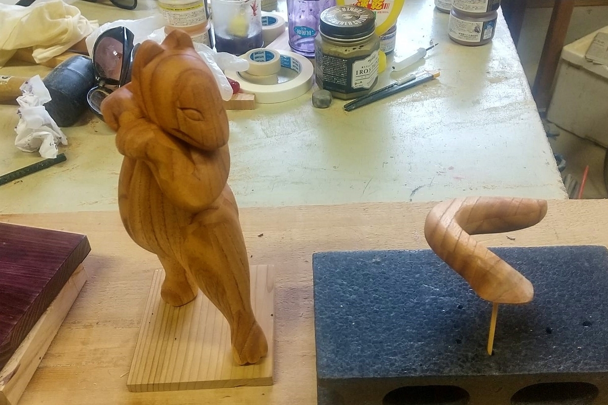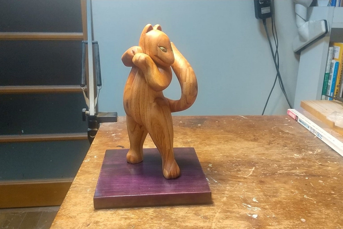 *【荏油】を塗った作品の乾燥中(「本体」と「後付けの尾」)